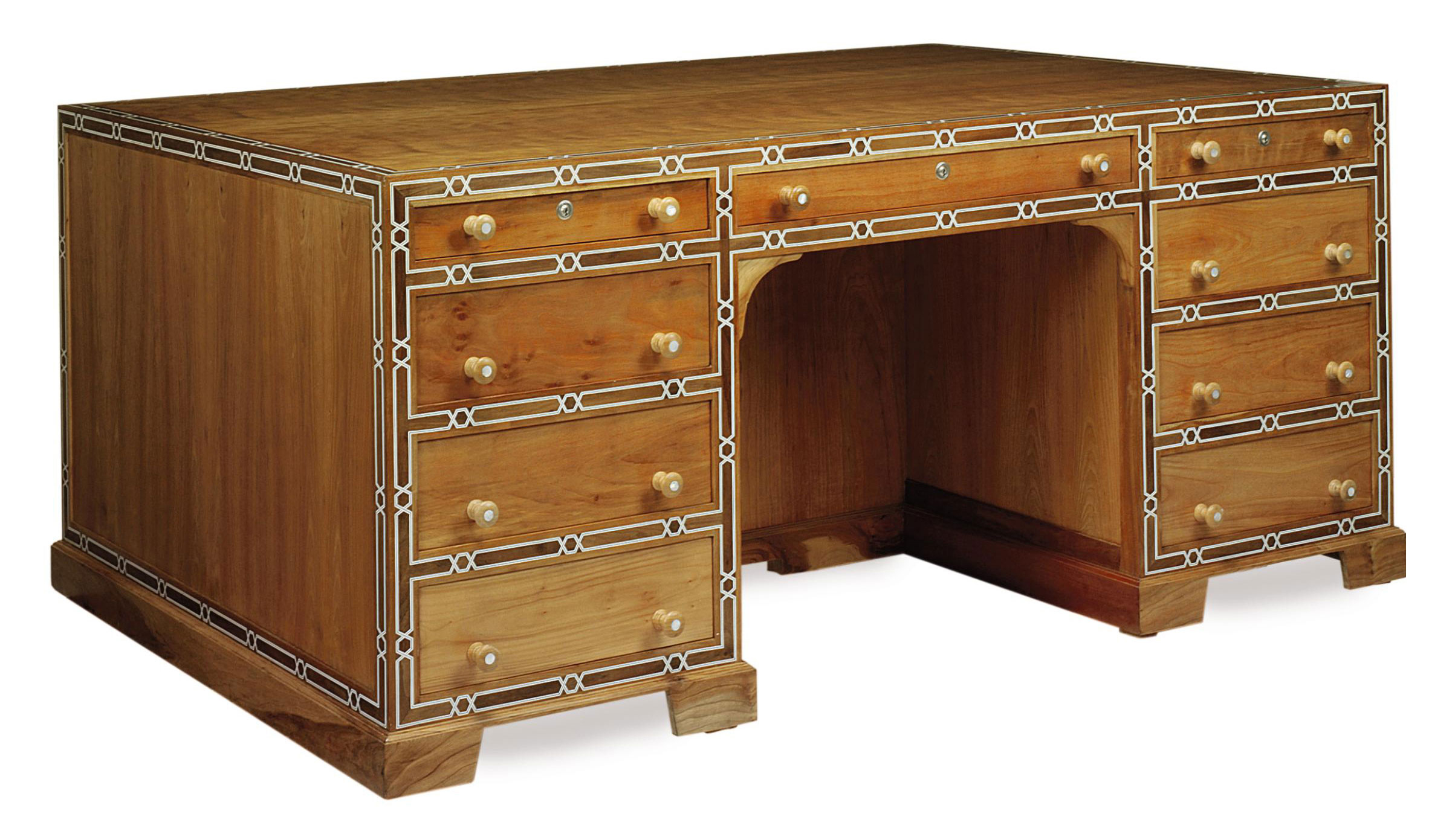 A Mother Of Pearl And Bone Inlaid Cherrywood Partner S Desk